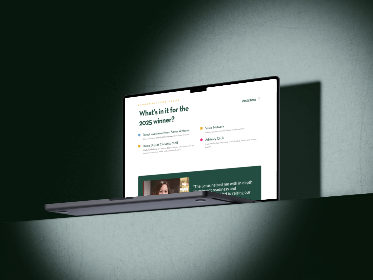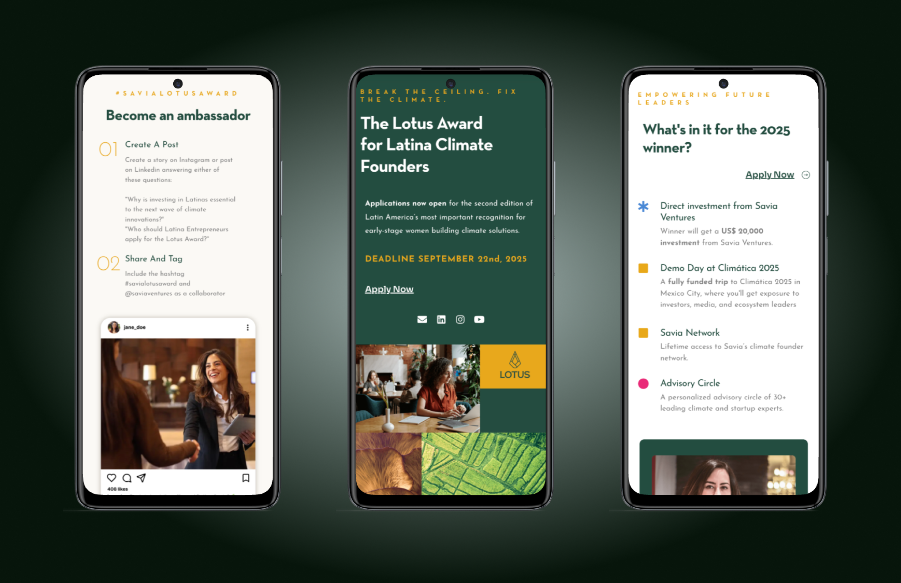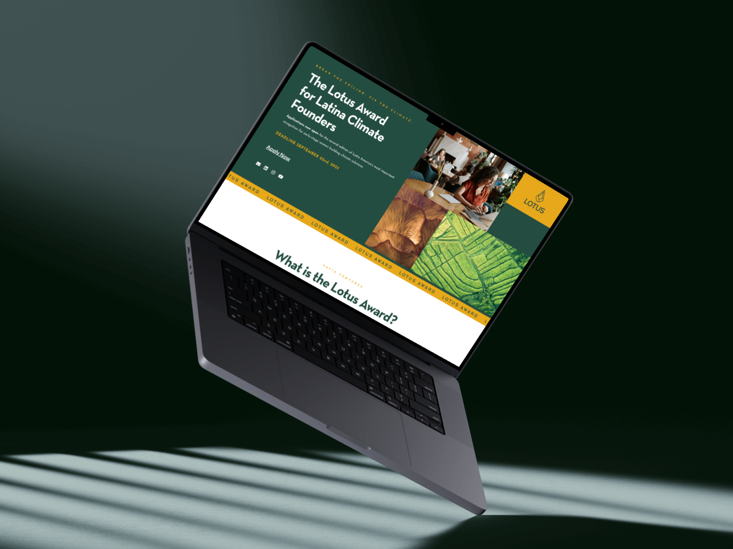 Lotus Awards, un galardón único enfocado en impulsar a emprendedoras latinas que enfrentan la crisis climática en América Latina, necesitaba una landing page que reflejara su identidad y sirviera como punto de partida para dar a conocer los premios.